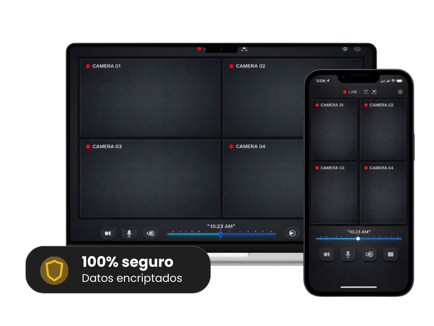 - acceso remoto seguro — Visualización desde app móvil con encriptación end-to-end